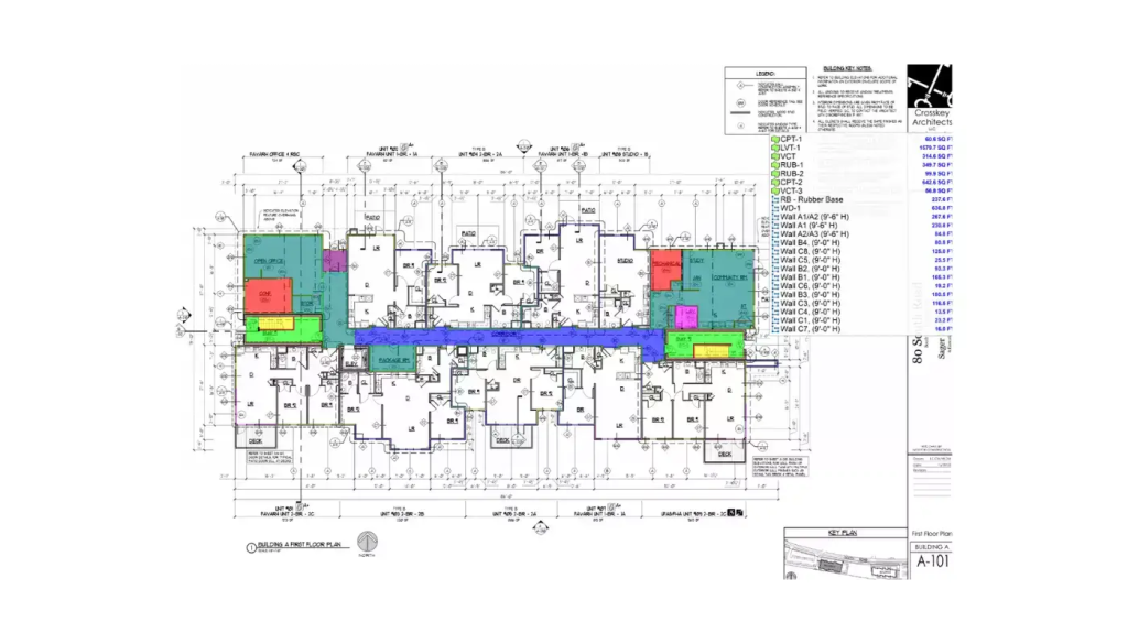 • Colour-coded plans and markups